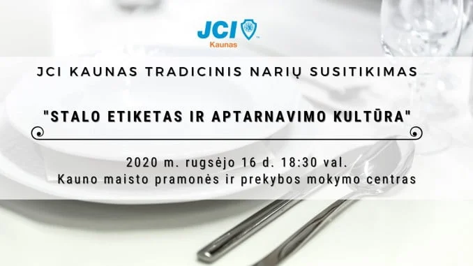 Šį tradicinį JCI Kaunas narių susitikimą praleisime labai kultūringai ir su įdomia mokymų tema „Stalo etiketas ir aptarnavimo kultūra”, kuri tikime pravers dar ne kartą mylimame ar naujame restorane! Mokymus ves: Kristina Česlevičienė ir Vita Brūzgienė, Kauno maisto pramonės ir prekybos mokymo centro profesijos mokytojos metodininkės. Susitikimo metu narių laukia:
