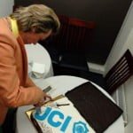 Justina sveikino prezidentą Ivars visų „JCI Lietuva” narių vardu ir linkėjo kuo geriausios sėkmės. Inesa pasirūpino puikia firmine dovana (žiūrėkite nuotraukose), kuri nustebino ne tik prezidentą, bet ir kai kuriuos narius.